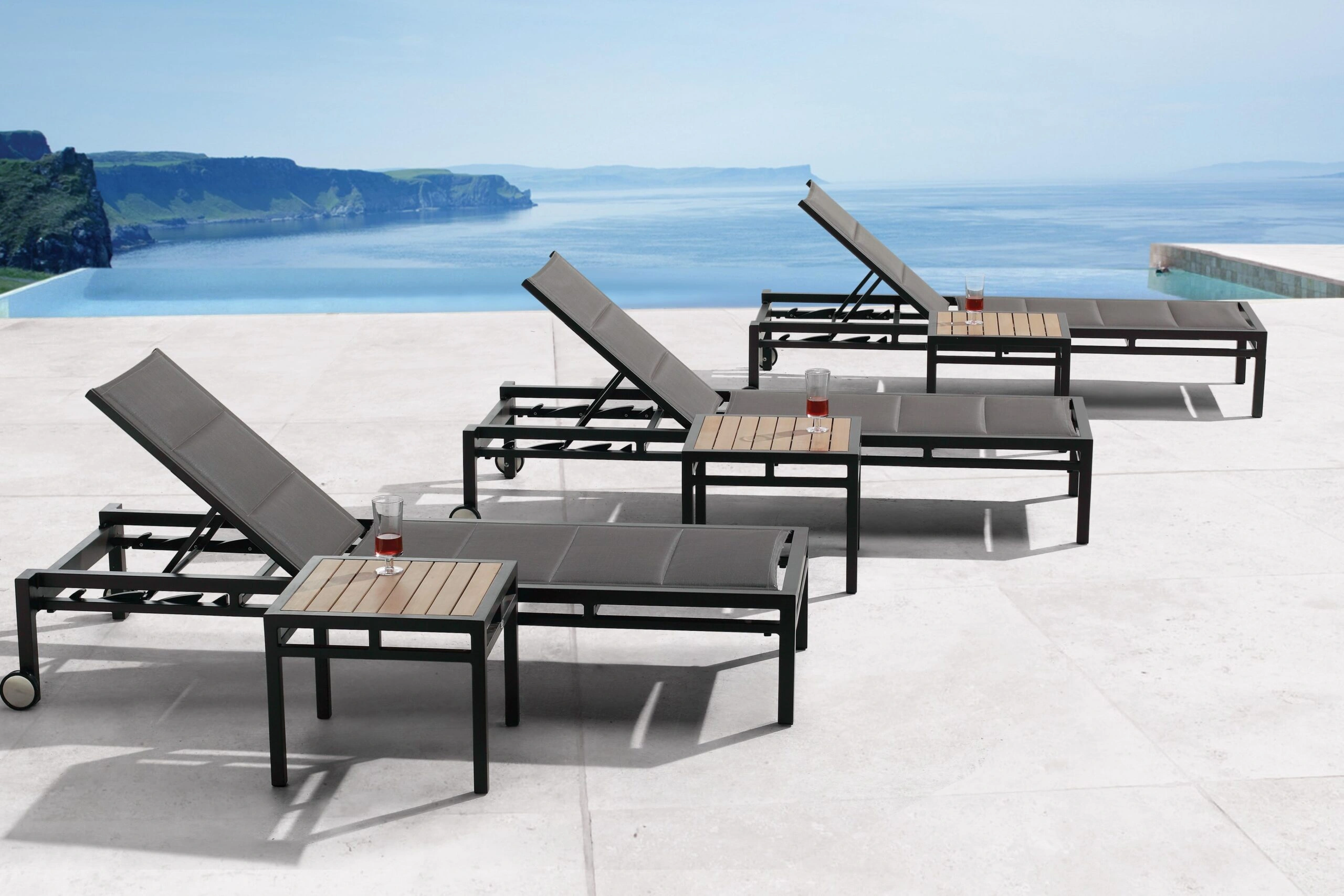 Powder coated aluminum frame / Faux teak seat